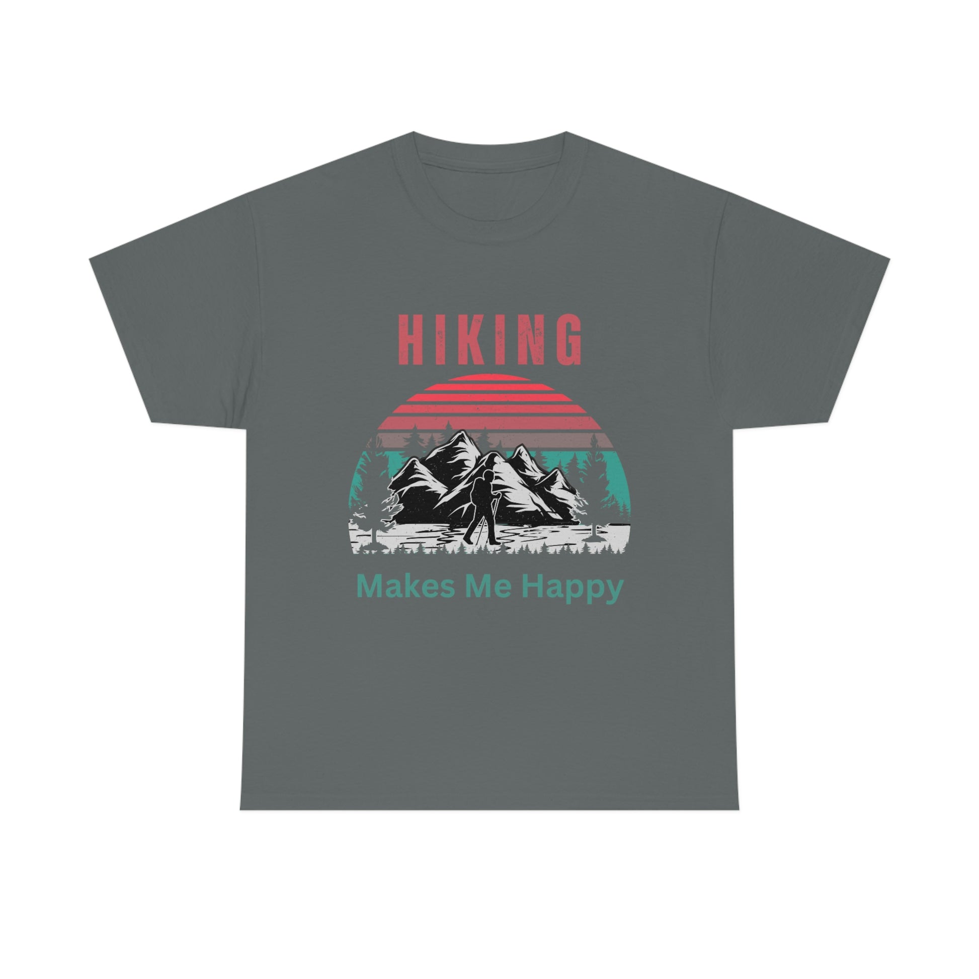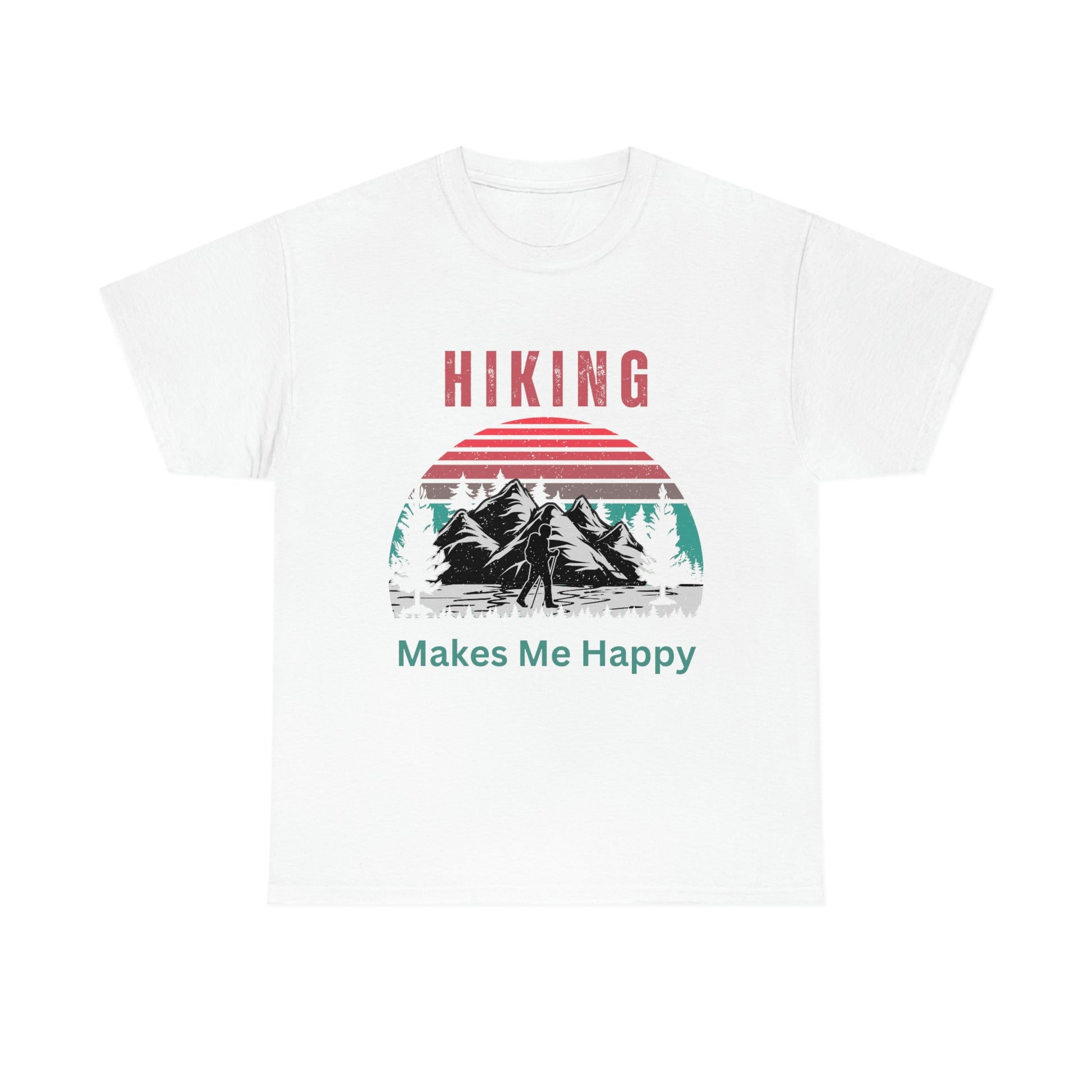 Take a journey back in time with our retro-inspired "Hiking Makes Me Happy" T-shirt and share your joy and happiness with everyone you meet, on the trail, or on the street.