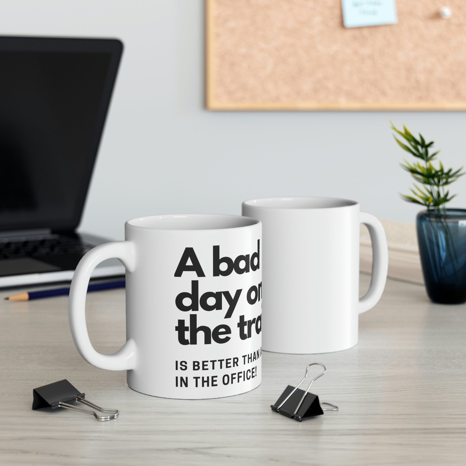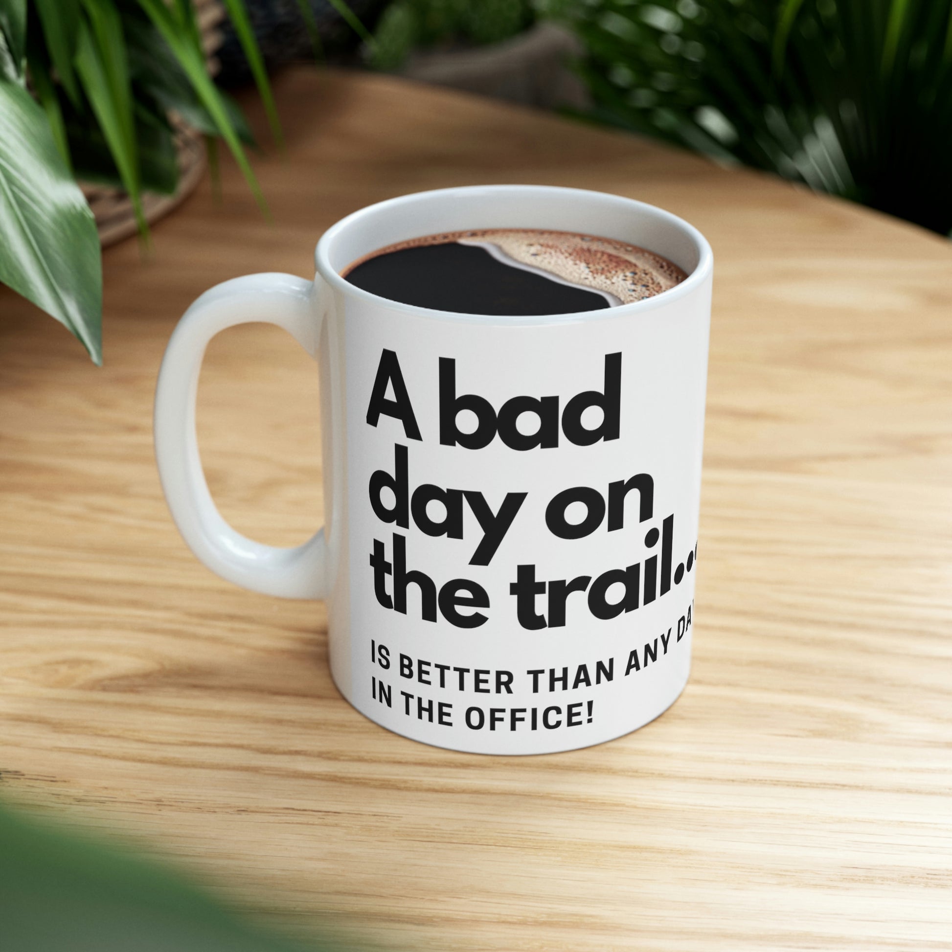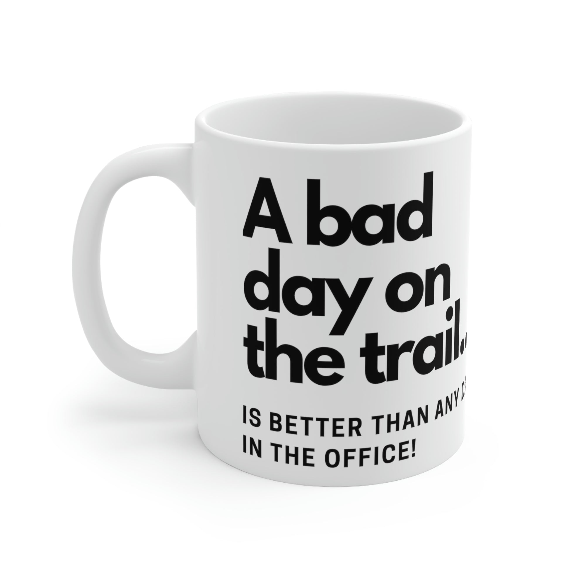 Sarcastic Coffee Mug – A Bad Day on the Trail is better than any day in the office. (White Ceramic)