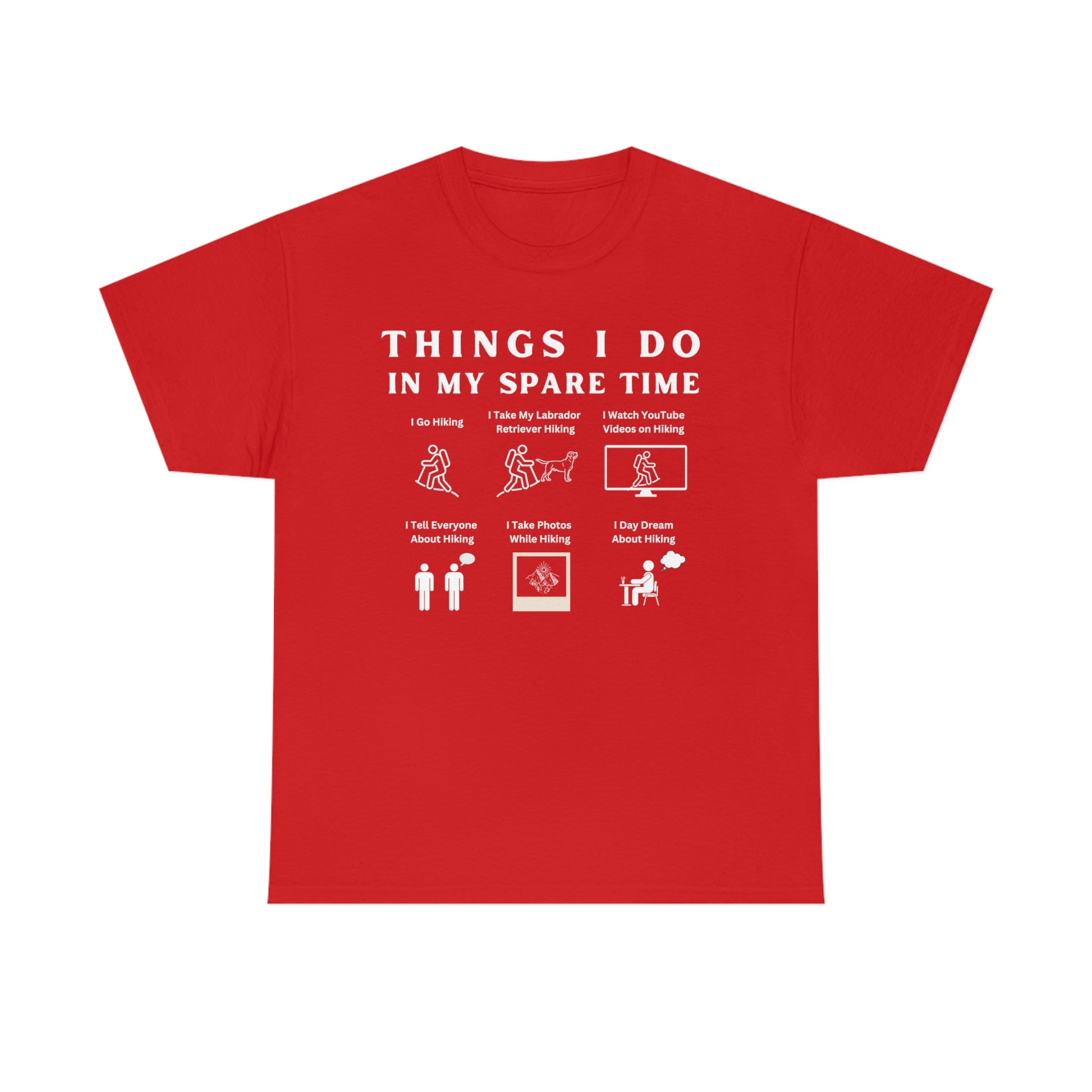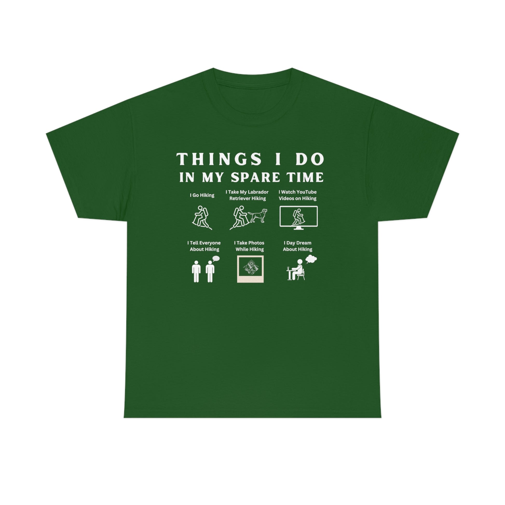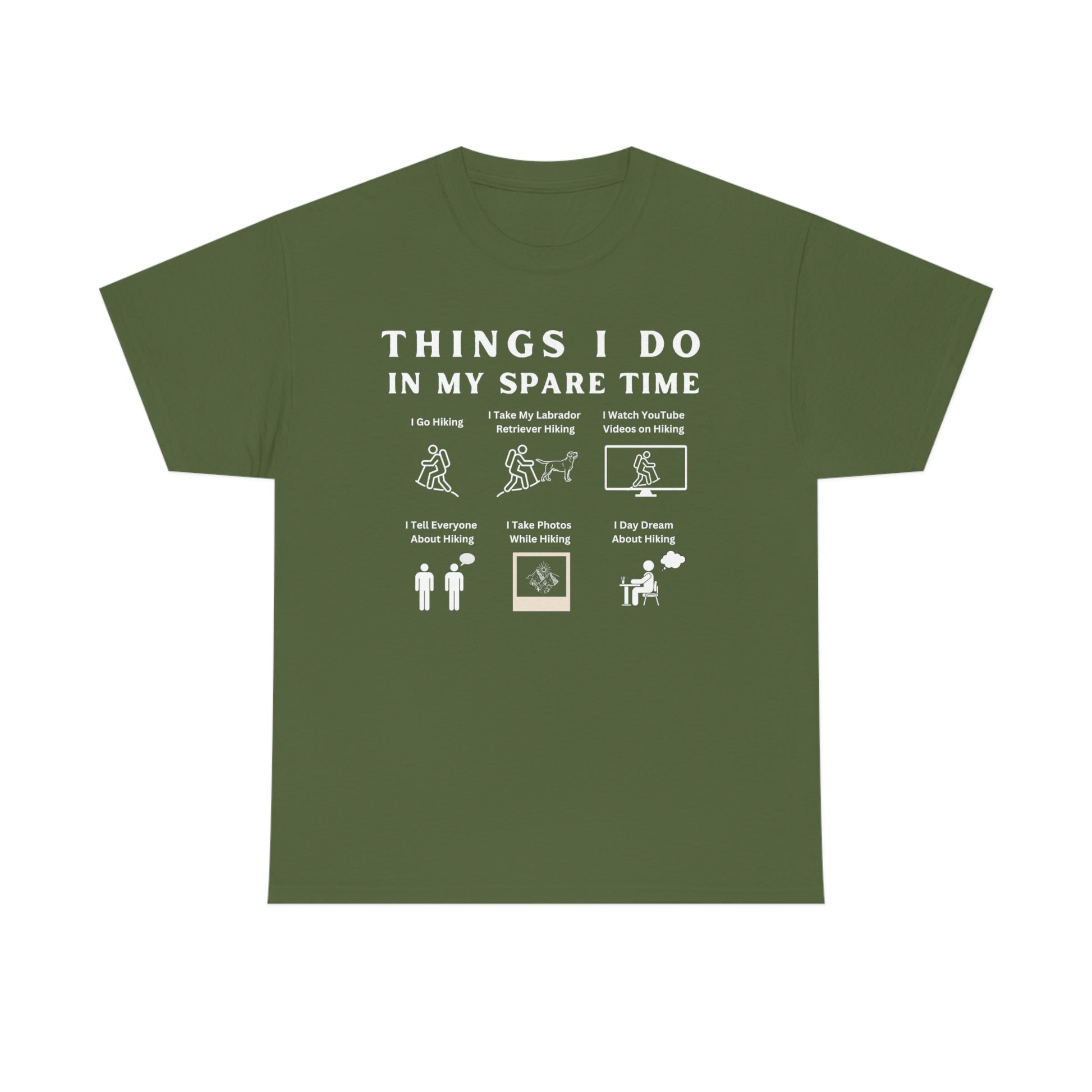 This shirt features six whimsical illustrations of things you love to do related to hiking, like hiking with your Lab buddy.